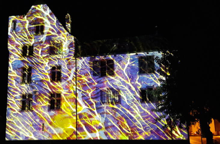 Ein Farben- und Klangspektakel an der Aussenfassade und in den Innenräumen des Prattler Schlosses.